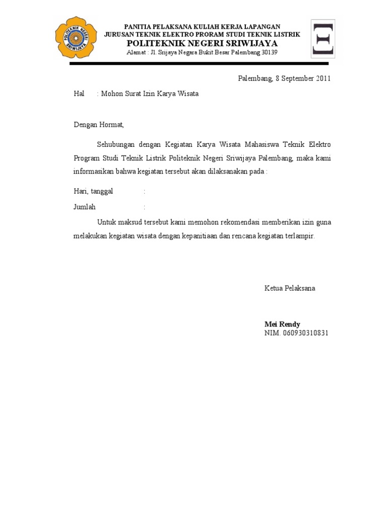 Surat Izin Karya Wisata Sekolah Terbaru Gratis