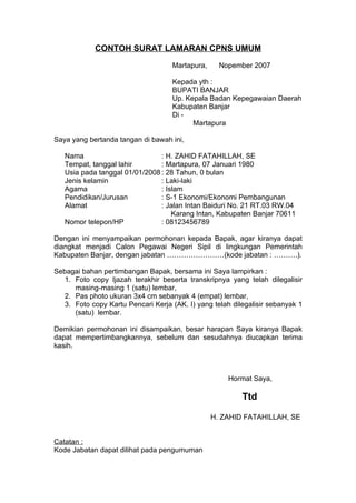 Download NowSurat Lamaran Kerja Jadi Cpns Ssuhhara