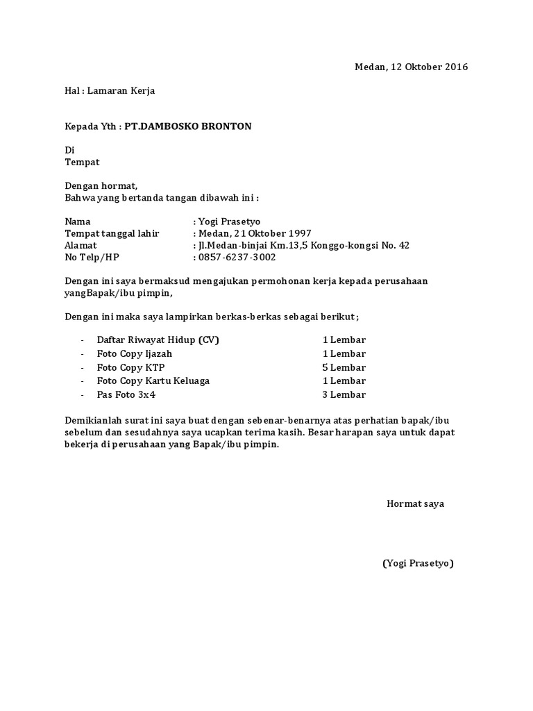 Download NowContoh Surat Lamaran Kerja 1 Loker Anak Medan