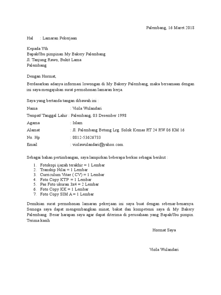 Download NowContoh Surat Lamaran Kerja Di Bakery Yang Benar