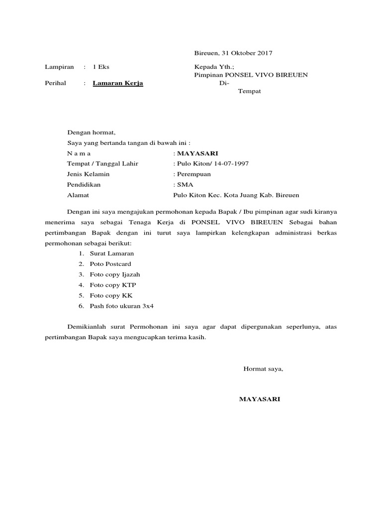 Download NowContoh Surat Lamaran Kerja Promotor Hp Vivo Yang Benar